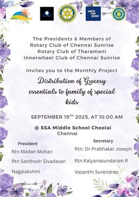A heartfelt initiative by the Rotary Club of Chennai Sunrise, where. . .